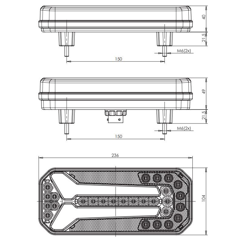 Numar functii 6: frana, pozitie, semnalizare dinamica, ceata, mers inapoi, catadioptru;
