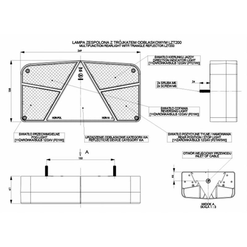 Lampa spate multifunctionala cu 6 functii, cu triunghi, dreapta, LZT 200 Horpol.