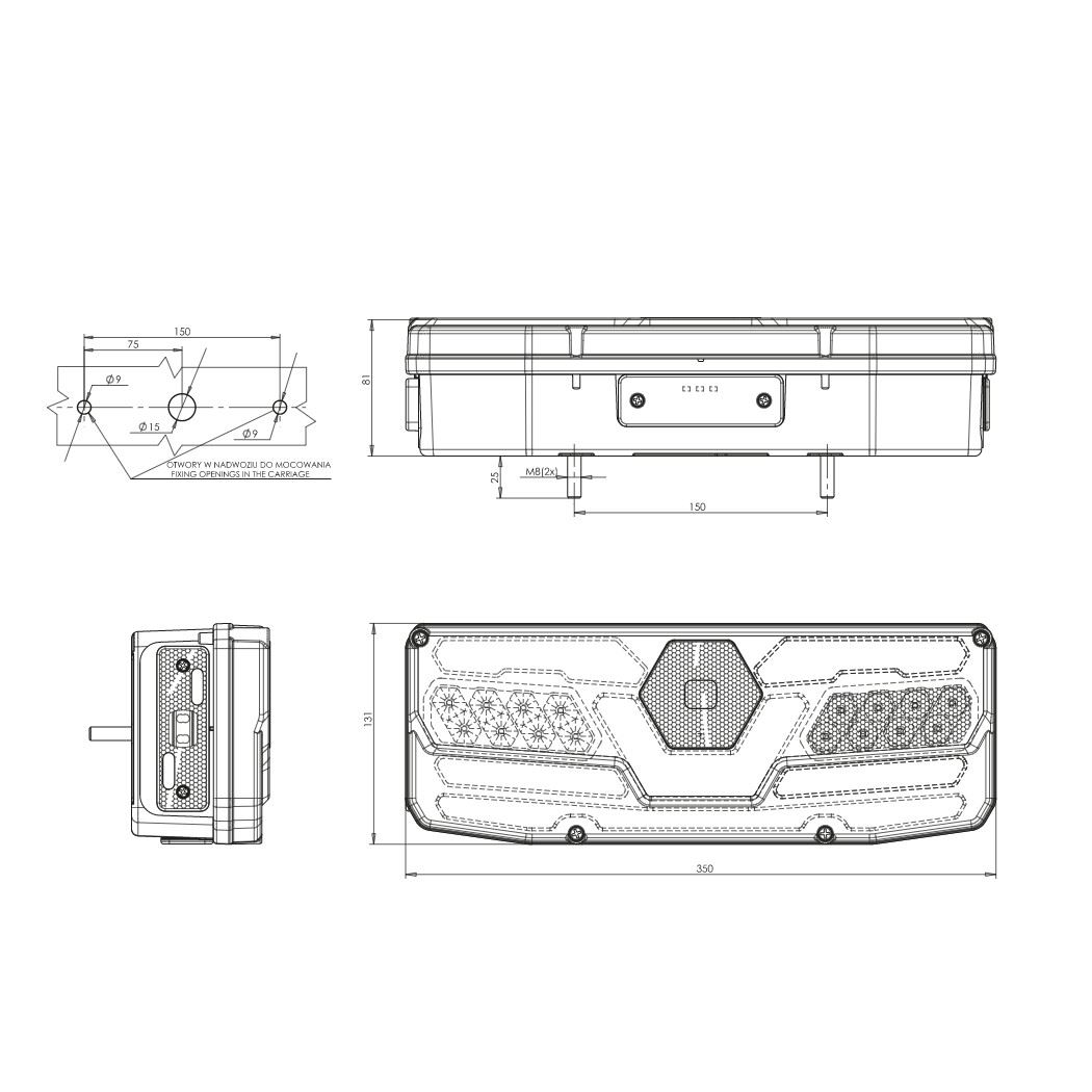 Lampa stop multifunctionala cu 7 functii, cu LED, stanga, W170 L 1190 Was.