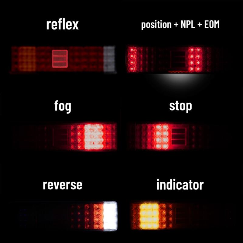 ✅ 6 funcții active într-o singură unitate — poziție, frână, semnalizare, ceață, mers înapoi și gabarit lateral, fără componente suplimentare de instalat.