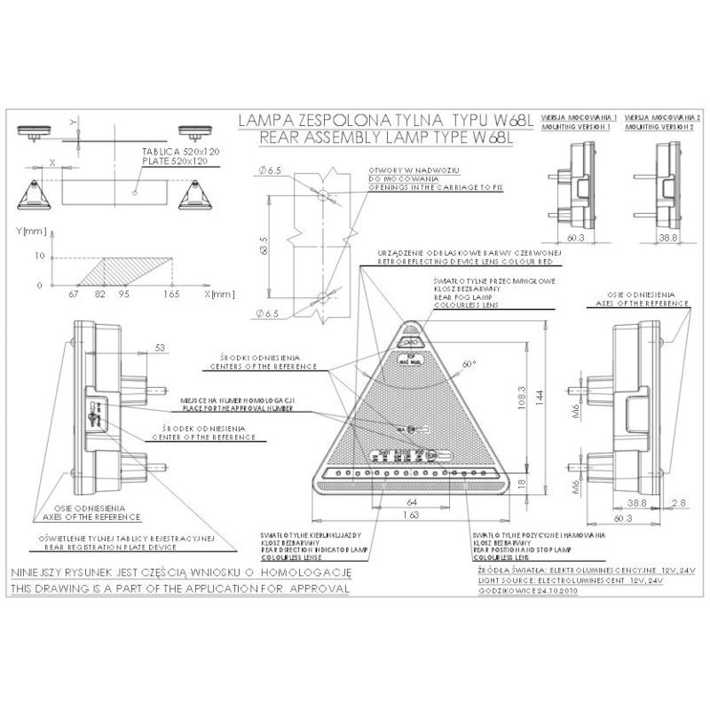Lampa spate multifunctionala cu 5 functii in forma de triunghi, dreapta W68P 326 Was.