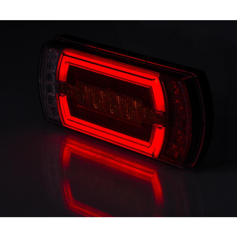 Lampa este echipata cu functii de iluminare: lumina de pozitie cu efect NEON, semnalizare directionala, stop, lumina de marsarie si element reflectorizant.