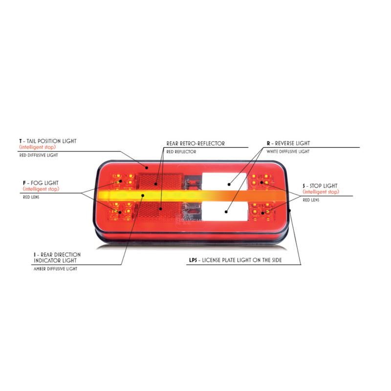 Numar functii 5: pozitie cu numar, frana, semnalizare dinamica, ceata si mers inapoi.
