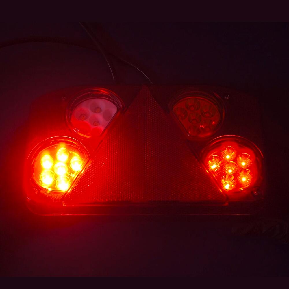 6 functii: pozitie, frana, semnalizare, ceata, mers inapoi, catadioptru triunghiular.