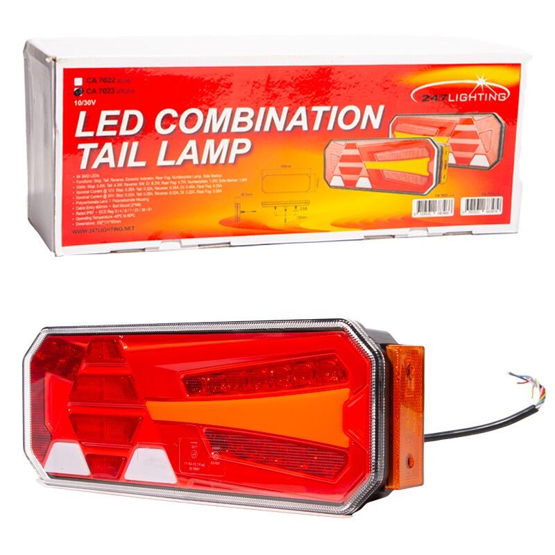 Lampa spate multifunctionala, 7 functii, LED Neon, cu triunghi, gabarit, ceata si mers inapoi, semnalizare dinamica, dreapta CA7023 247Lighting.