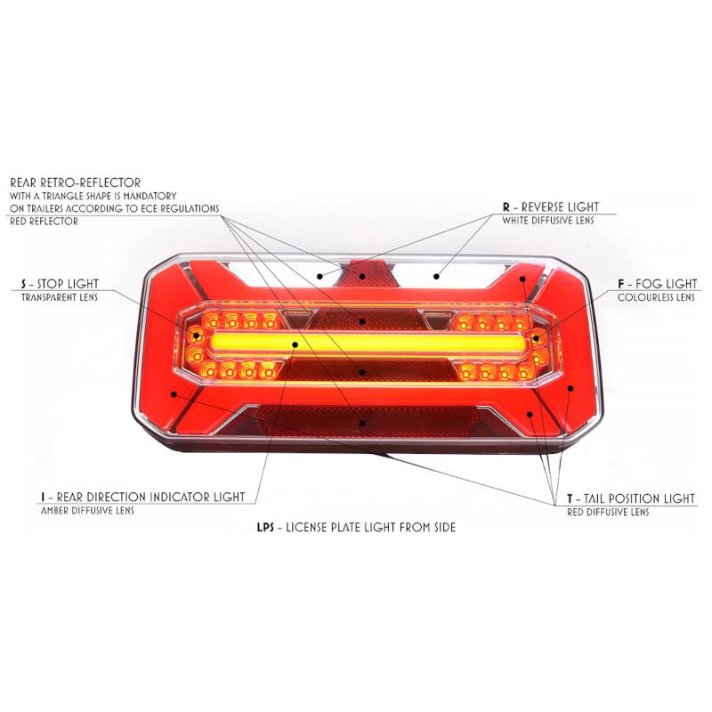 Numar functii: 7 pozitie, frana, semnalizare, ceata, mers inapoi, si catadioptru cu lampa gabarit lateral.