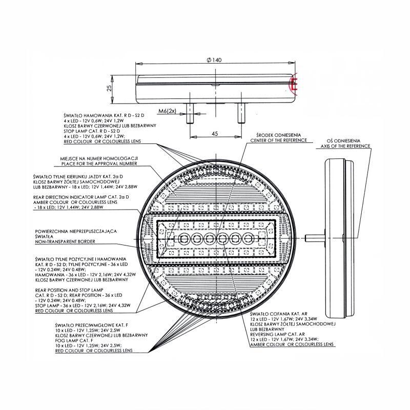 Mers inapoi 12V-1,67W; 24V- 3.34W.