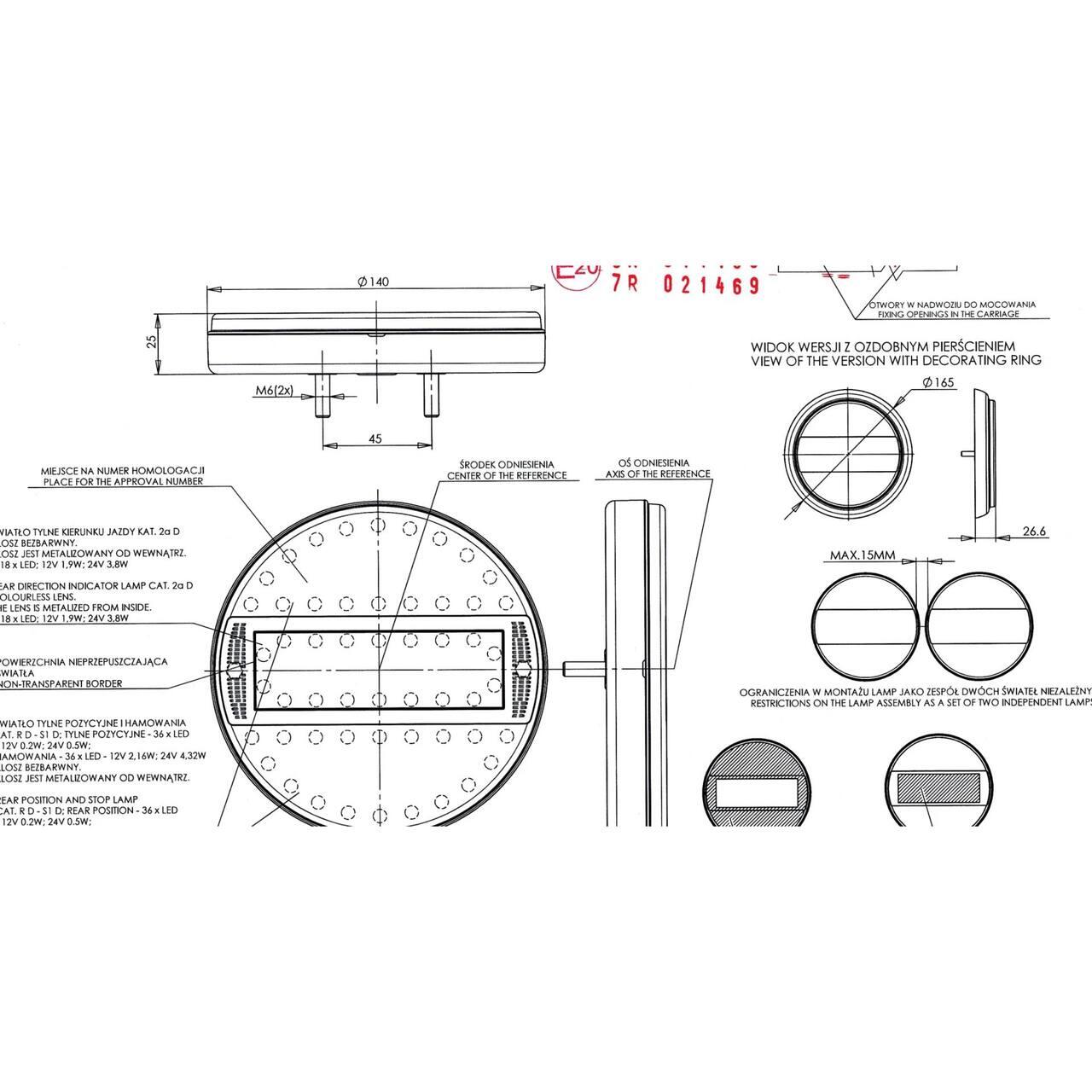 Lampa spate multifunctionala, 3 functii, LED, hamburger, cu dispersor oglinda, stanga-dreapta, slim, W91 733 Was.