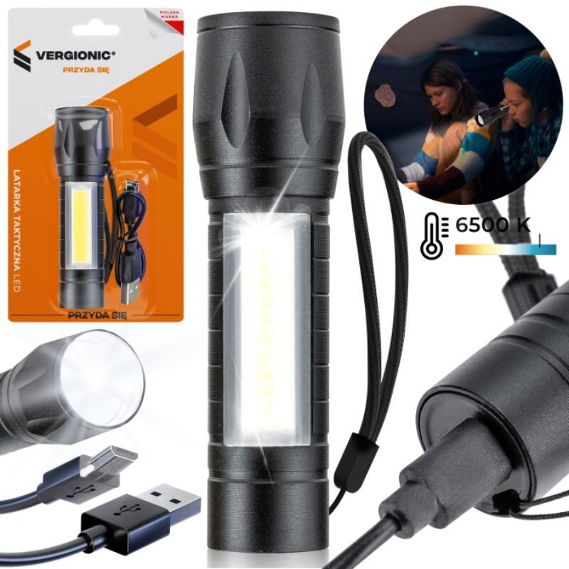 Lanternă de lucru tactică 2 în 1, cu LED COB și XPE, aluminiu, funcție Zoom, încărcare USB, b.a.m LAM050 Vergionic