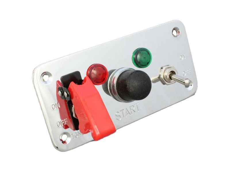 Panou de pornire a motorului cromat pentru utilizare pe drum sau competitie. Ideal pentru kit-uri de masini sau masini de curse sau ca inlocuitor pentru un comutator de pornire cu cheie in vehiculele personalizate/modificate. Poate fi folosit si pe barci.