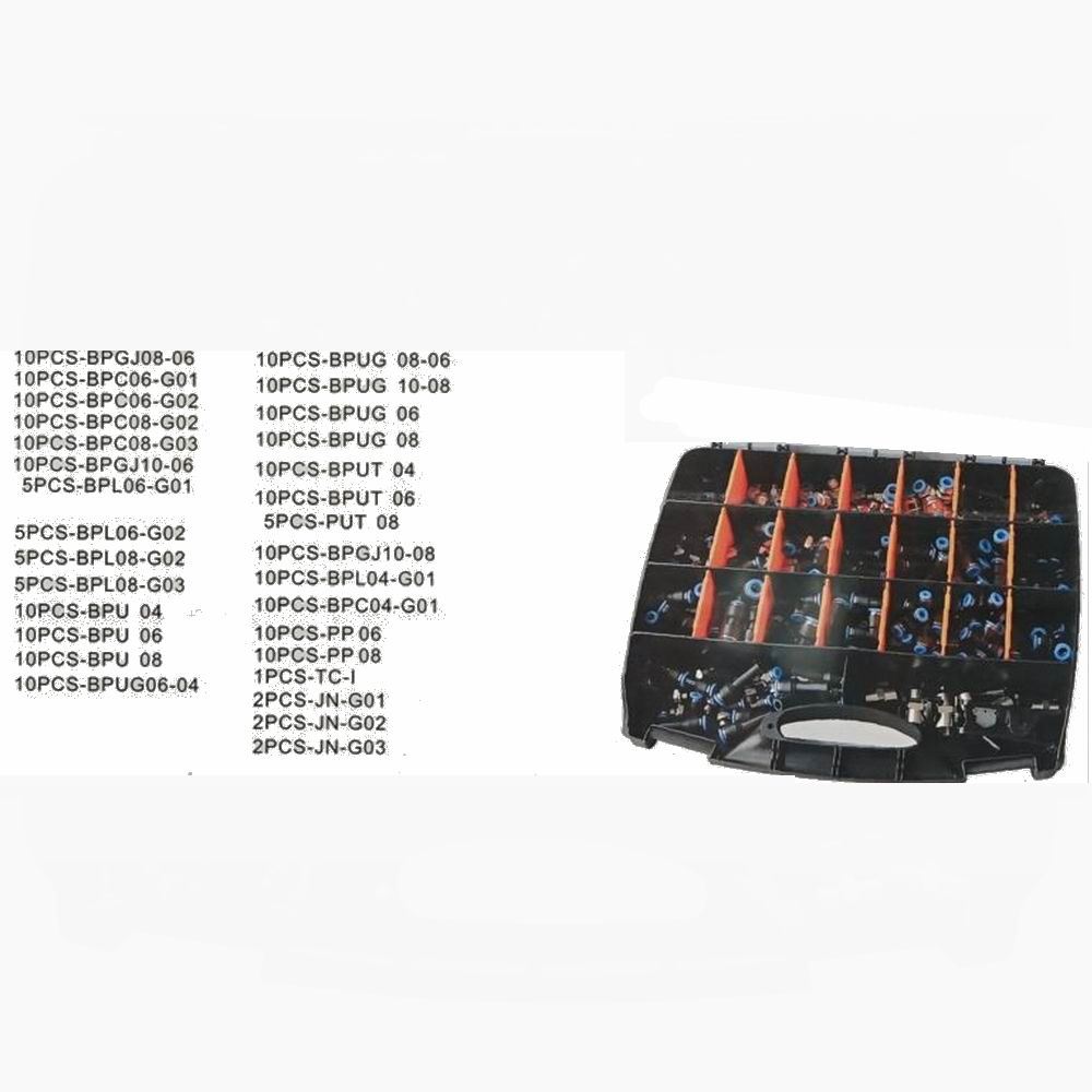 Trusa 242 bucati conectori, cuple rapide din plastic, mufe pentru furtun aer comprimat Breckner Germany.