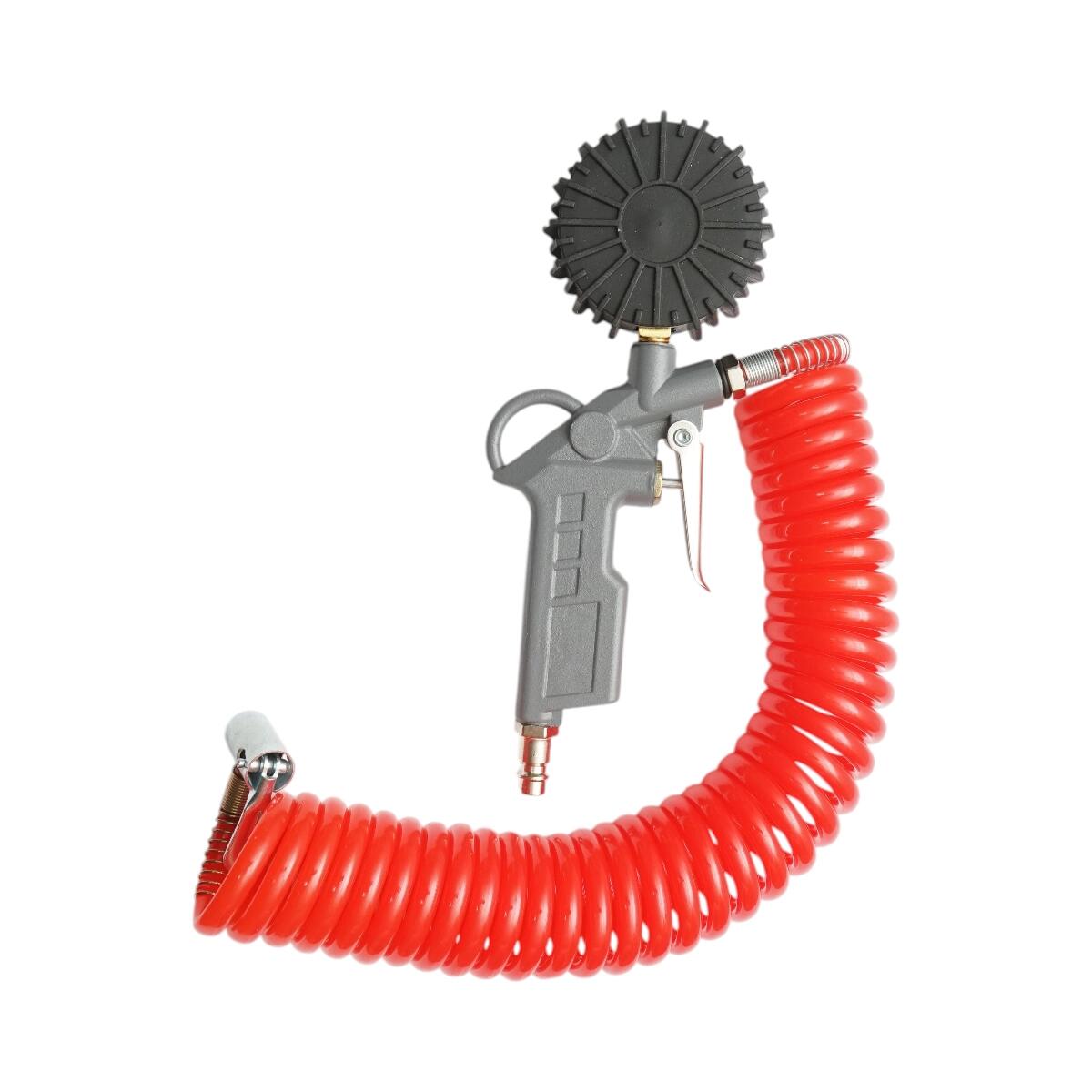 Pistol aer roți cu manometru și furtun spiralat 5m, 0-16 bar, RK63