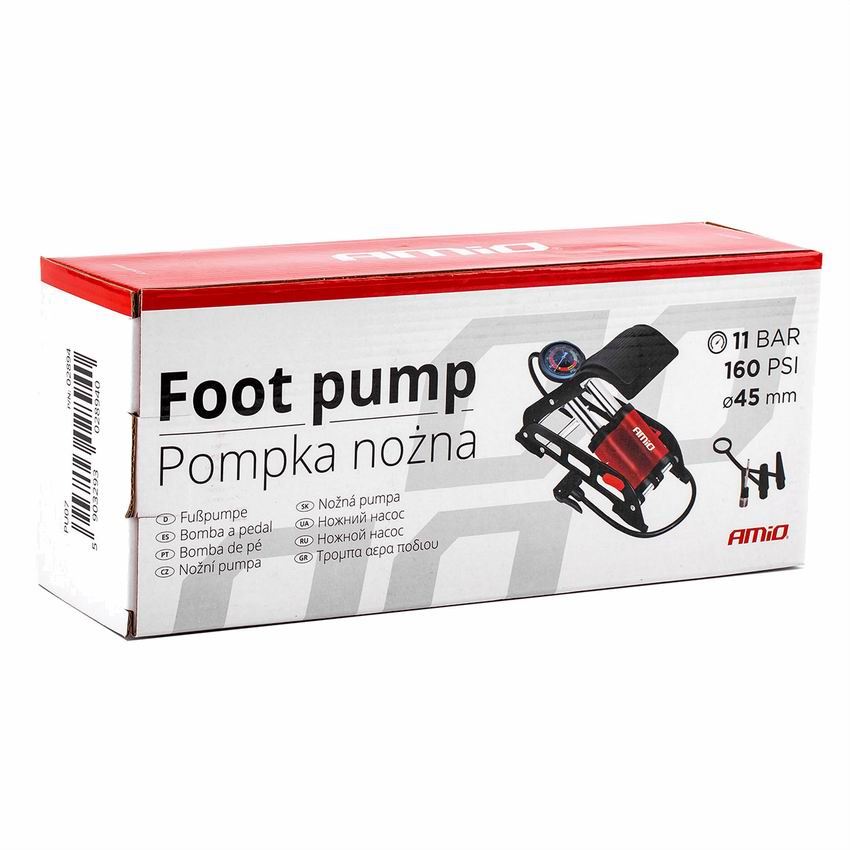 Pompa aer picior 1 cilindru, manometru fi 55, 02893 Amio.