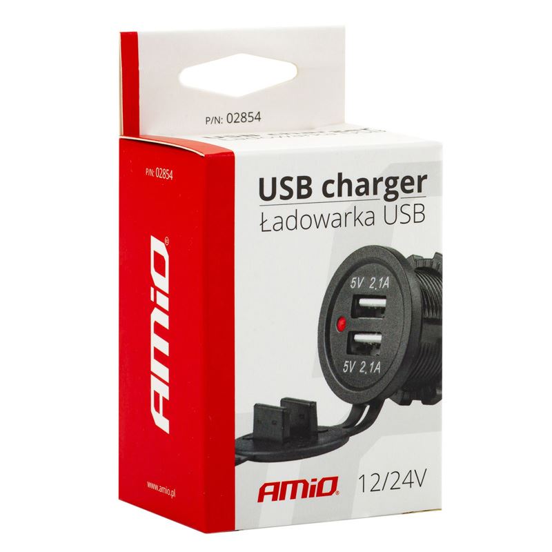 Priza cu 2 USB cu Led rosu 12-24V, 4.2A Mod04 02854 Amio.