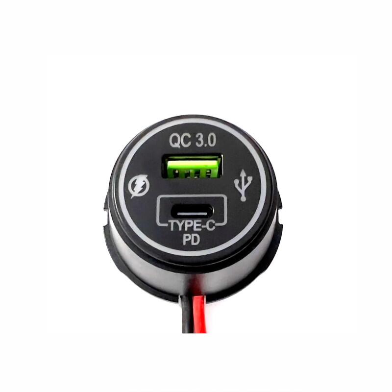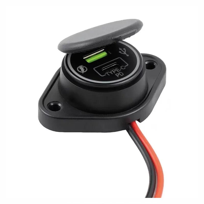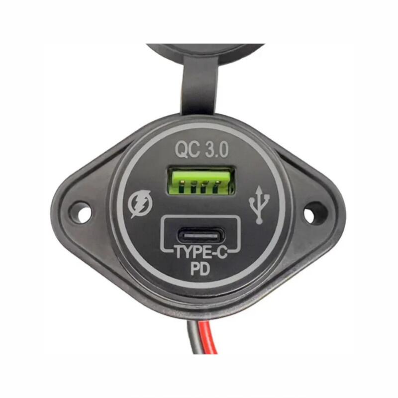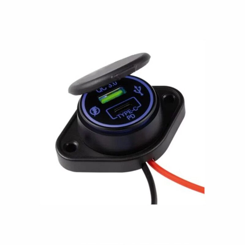 Priza cu 2 USB, cu LED albastru, 12-24V, USB tip A QC3.0 si tip C PD cu incarcare rapida, cu montare aparenta, DS2076.