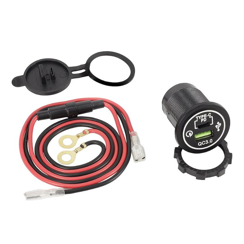 Încărcător auto încorporat cu porturi USB-C PD 30W și USB QC3.0 18W, ideal pentru instalare în bord sau tapițerie, oferind alimentare rapidă și sigură pentru dispozitivele tale mobile, chiar și în condiții dificile.