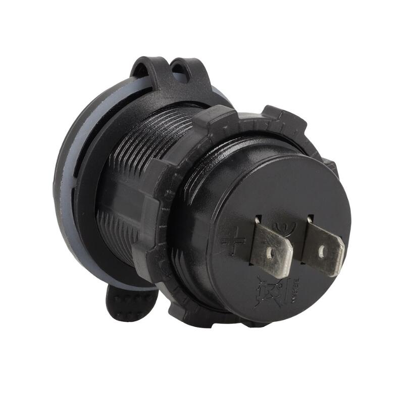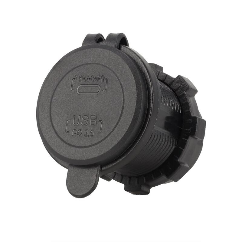 Priza cu 2 USB-uri, rotundă, încastrabilă, cu filet, 12-24V, USB + USB-C, Qc 3.0, Led albastru, cablu 60 cm, Carmotion 63211