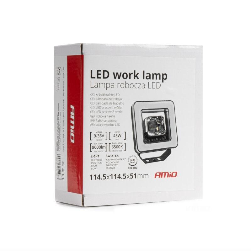 Proiector 114x114, LED, 9-36V, 45W, 8000lm, 4 functii, cu semnalizare si pozitie NEON, faza scurta, faza lunga, spot, 04198 Amio.