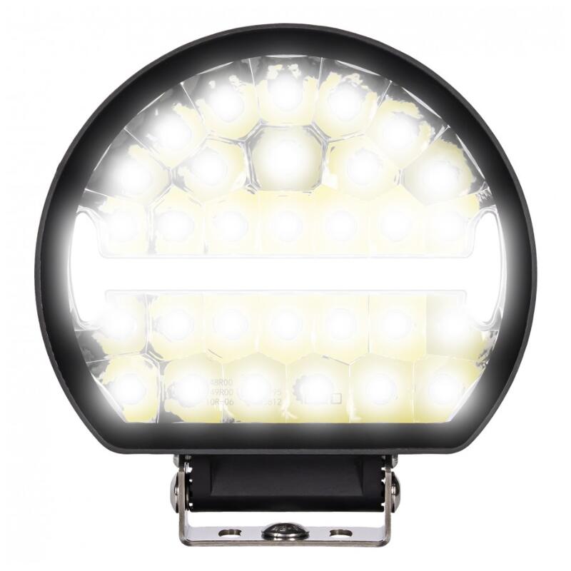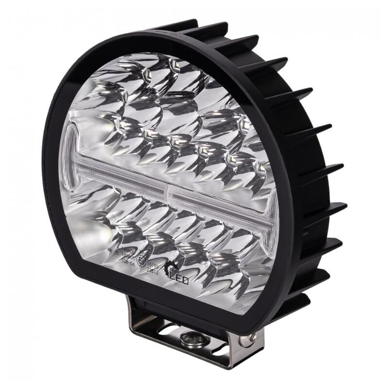 Proiectorul TruckLed L3435 combină 54 LED-uri pentru fază lungă 45W și bandă poziție albă STRIPE 3W în format 206,1 x 54,9mm cu suport montaj. Carcasă aluminiu și lentilă policarbonat, funcționare 12V/24V între -40°C și +60°C, protecție IP67, certificat ECE R10, R148, R149 și protecție polaritate inversă.