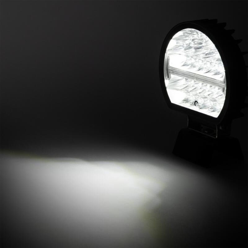 - 54 LED-uri pentru performanță maximă: număr mare LED-uri distribuie puterea uniform - fascicul omogen fără pete întunecate, eficiență termică superioară față de puține LED-uri puternice concentrate;