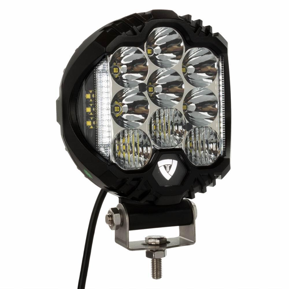 Proiector rotund cu LED-uri cu luminozitate mare de pana la 350 m, 40 de LED-uri tip CREE garanteaza o durata de viata a luminii de 30.000 de ore. Luminozitatea de 3800 Lm te va ajuta cand lucrezi noaptea. Proiectorul este echipat si cu lumina de zi.
