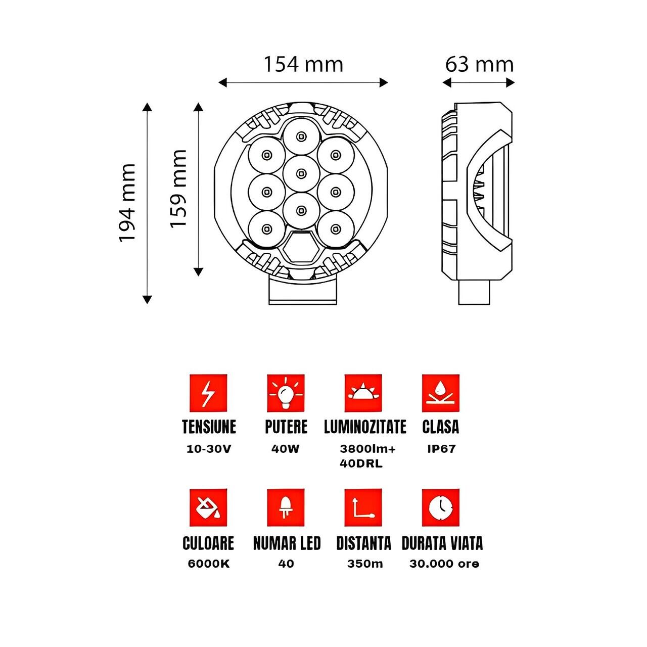 Proiector fi154, faza lunga si pozitie, cu LED, 40W, 3800lm, TT.13240DRL
