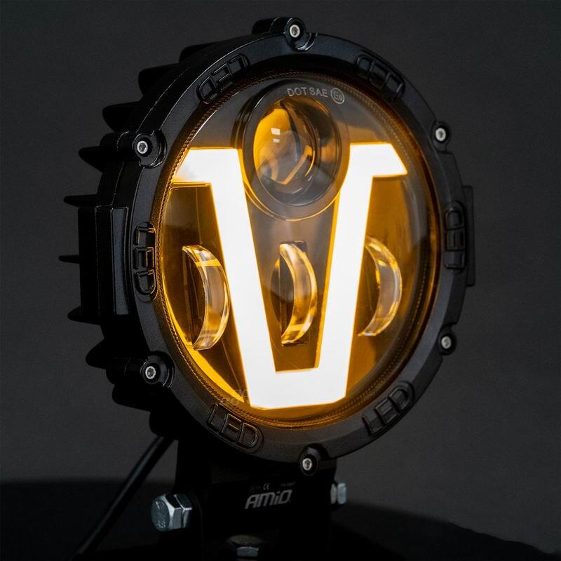 Proiector fi172, LED, 9-36V, 50W, 5500lm, cu faza lunga, faza scurta, pozitie alba DRL NEON, semnalizare, V Type, 03697 Amio.