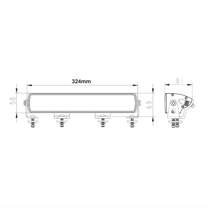 Proiector LED BAR 3in1, 324x58, LED-uri LG, faza lunga, pozitie alba si galbena, 12-24V, 100W, 8500lm, 6000K, Conector DT cu 4 PIN, Offroad Black, TT.11103.
