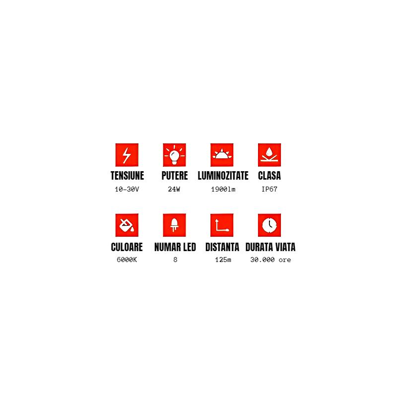 Proiector lucru 139x103, 8 LED-uri, 12-24V, 24W, 1900lm, flood, TT.13225