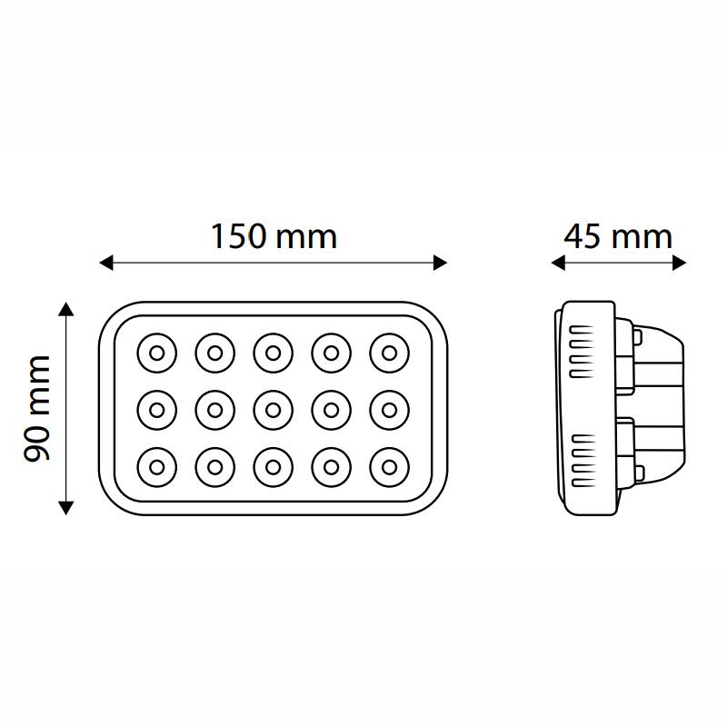 Proiector lucru 150x90, 15 LED-uri, 10-30V, 45W, 3400lm, cu 3 prinderi, TT.13244.