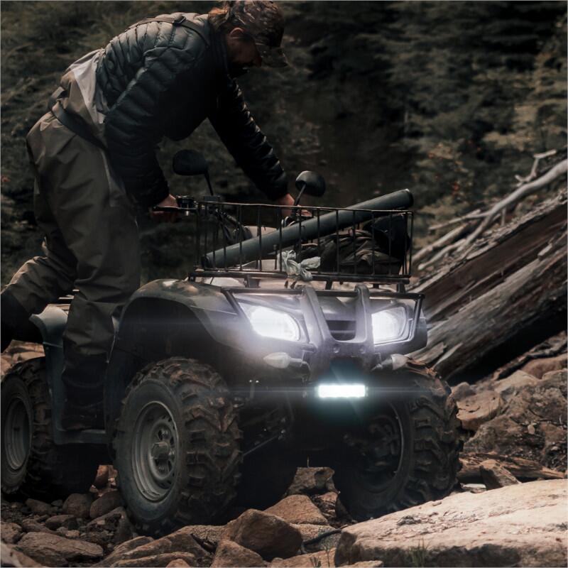 Functia luminii de lucru are 4 LED-uri de 9W fiecare, ceea ce inseamna ca are o putere serioasa cu 36W si 3200 Lumeni. Dar luminile de avertizare intermitente de culoare galbena de pe partea de jos o diferentiaza de restul. Aceste lumini de avertizare intermitente pot fi vazute in partea din fata a lampii, deoarece sunt construite cu LED-uri super luminoase de 4 x 3W.