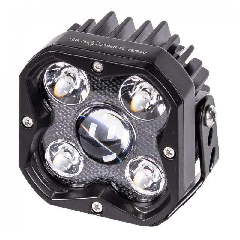 Proiectorul de lucru TruckLed L0183 combină lentilă spot centrală convexă cu 4 lentile flood laterale pentru iluminat 2700 lumeni simultan pe distanță și lățime la 29W putere. Format compact 81,8 x 94,4 x 61,5mm cu 5 LED-uri, carcasă aluminiu cu aripioare răcire USA design, suport reglabil 180° și protecție IP67, funcționare 12V/24V.