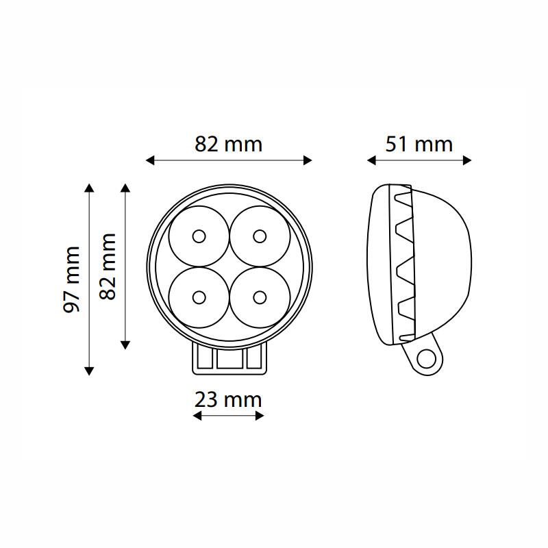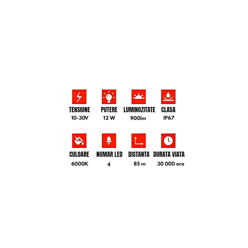 Lampa de lucru formata din 4 LED-uri cu o putere de 900 lumeni cu o raza de actiune de pana la 85 m.