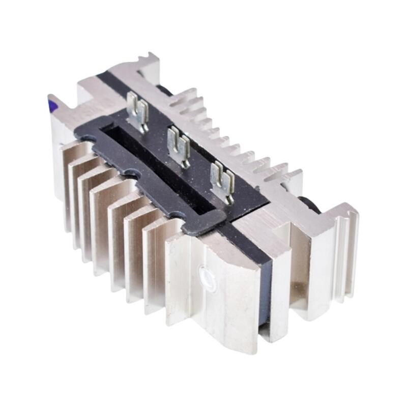 Construcția din aluminiu cu radiatoare integrate permite disiparea eficientă a căldurii, asigurând funcționarea corectă și durabilitatea alternatorului chiar și în condiții solicitante.