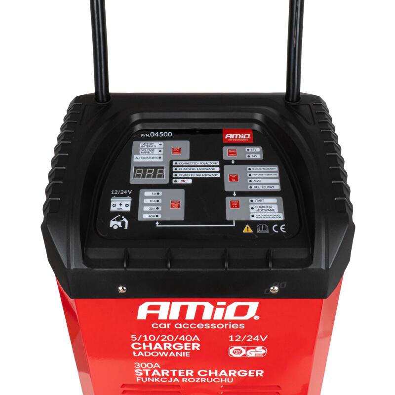 Redresor cu pornire JumpStarter, 12-24V, 40A, 300Ah, pe roti, AMIO 04500