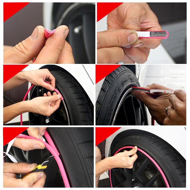 Produsul se aplica pe marginea jantei prin lipire cu banda dublu adeziva inclusa;