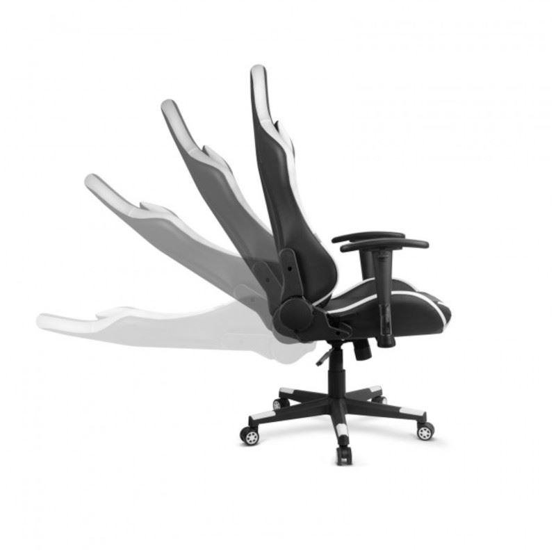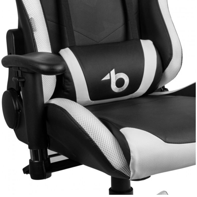 Zona de relaxare cu suport lateral inalt, perna de talie, perna pentru gat si spate ridicat il recomanda nu numai pentru gameri, dar si pentru munca indelungata la birou. Prin utilizarea acestuia, se poate preveni dezvoltarea durerilor lombare si a durerilor de spate. Spatarul inclinat, cu design slick, pernele si rotile colorate ofera un aspect bestial.