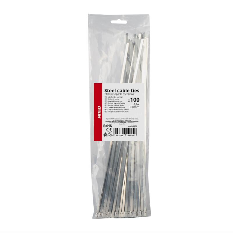 Set 100 coliere metalice, 4.6x350mm, inox, Self Lock Zip Ball, 04324 Amio.