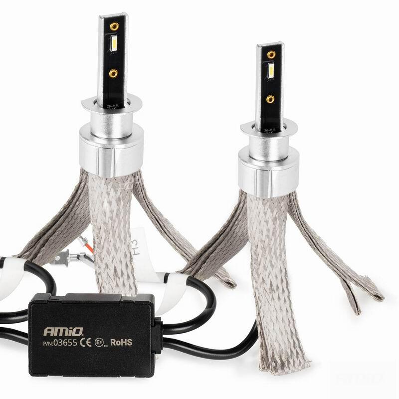 Set 2 becuri H1 2 LED-uri, 12-24V, 50W, 4300lm, 6000K, cu canbus, Amio 03655