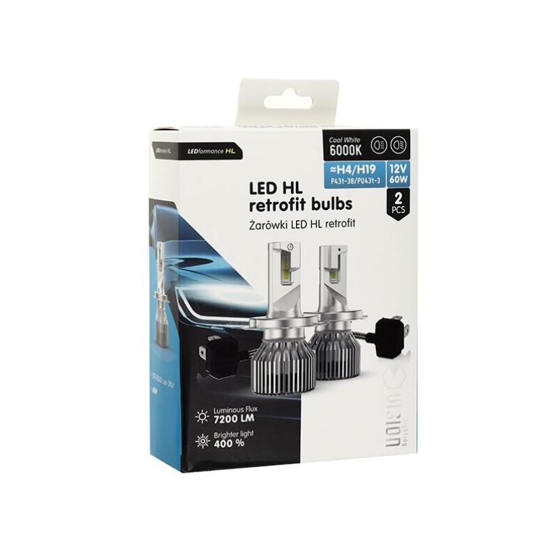 Set 2 becuri H4, 2-LED CSP, 12V, 60W, 7200 LM, 6000K, 400%, cu radiator ventilat, HL Retrofit Series, Carmotion Vision 83311.
