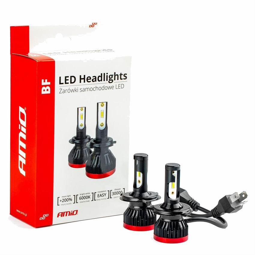 Set 2 becuri H4, 4 LED-uri COB, cu ventilator, BF Series 02241 Amio.