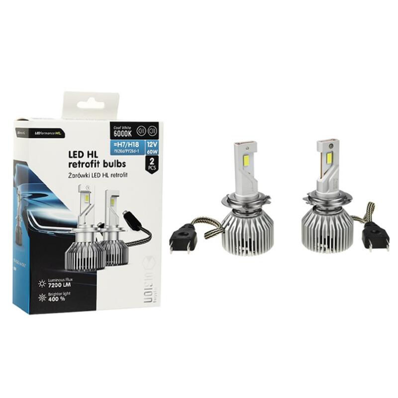Set 2 becuri H7-H18, 2 x LED CSP, 12V, 60W, 7200 LM, 6000K, 400%, cu radiator ventilat, Seria HL Retrofit, Carmotion Vision 83310.