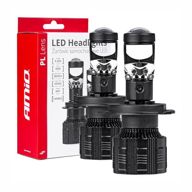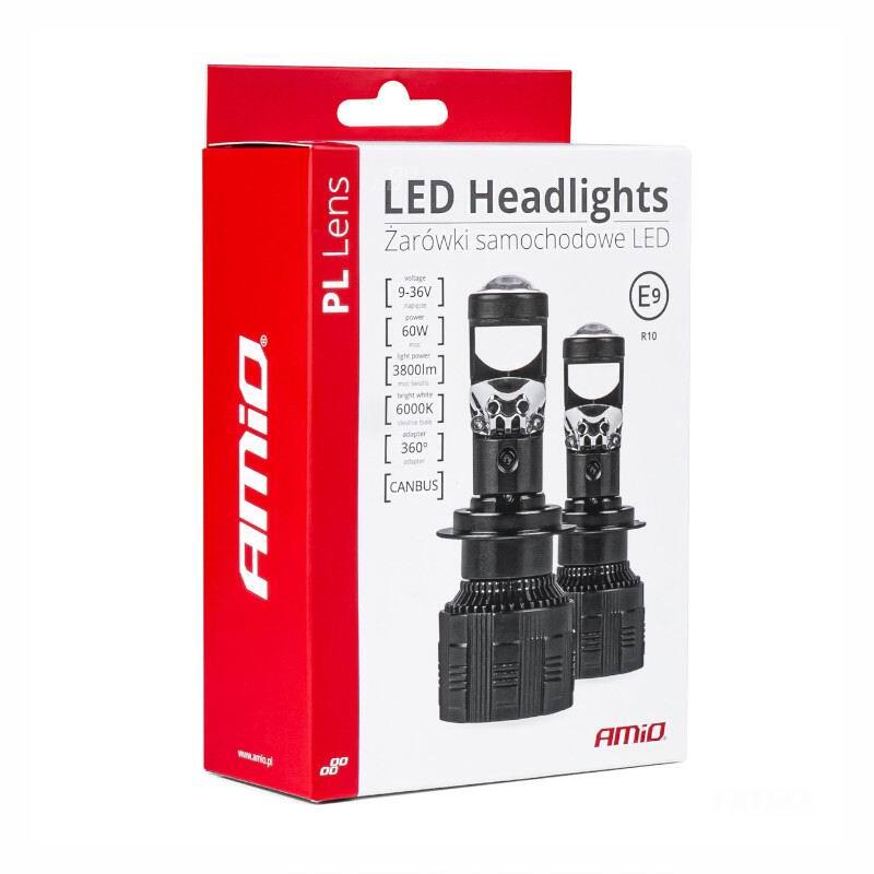 Set 2 becuri H7, LED, 9-36V, 60W, 3800lm, 6000K, Canbus, cu lupa, 03668 Amio.