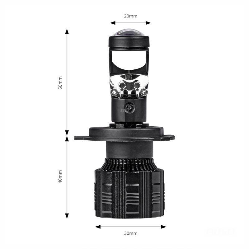 Baza diodei este reglabila, ceea ce ii permite sa fie adaptata la diverse tipuri de faruri. Lentila proiectorului si diodele puternice asigura o distributie aproape perfecta a luminii in lampa fara lentile. In plus, sistemul EMC incorporat elimina interferentele radio FM/CB. Exista un suport de cupru sub diode, care previne emisiile UV si IR, protejand reflectorul si reflectorul de ardere.