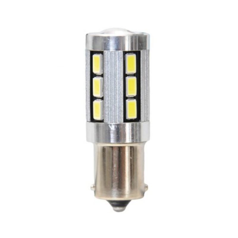 Set 2 becuri semnalizare 18 LED-uri SMD cu lupa, 12V-24V, P21W BA15s, 7429 Automax
