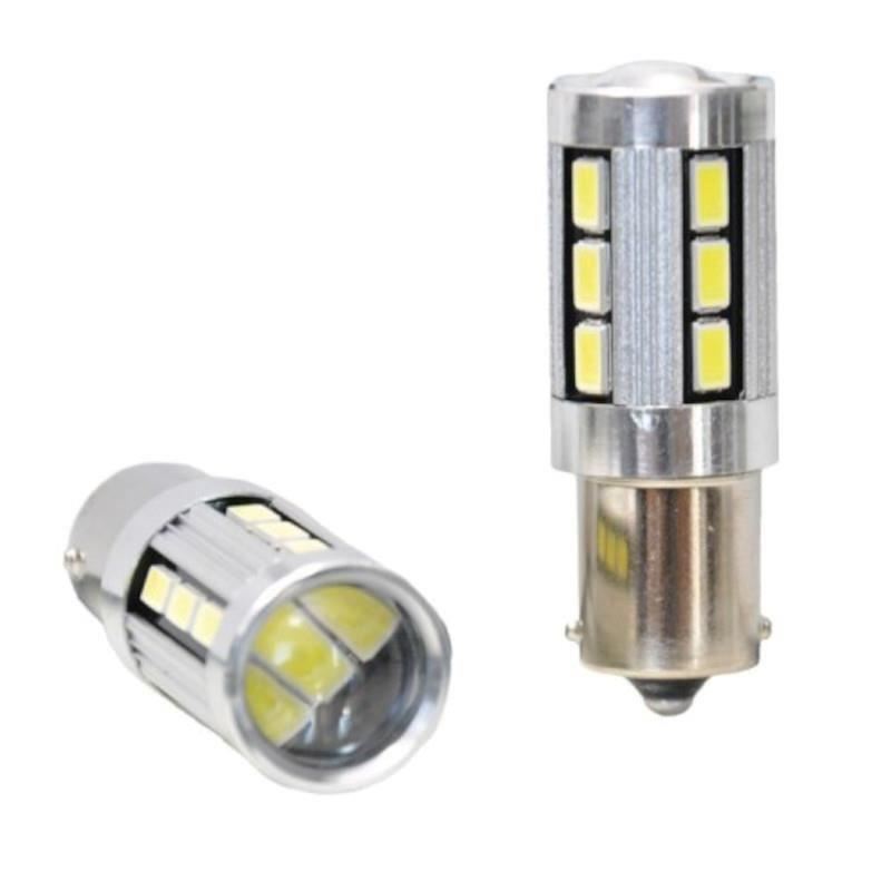 Set 2 becuri semnalizare 18 LED-uri SMD cu lupa 12V P21W BA15s, 7429 Automax