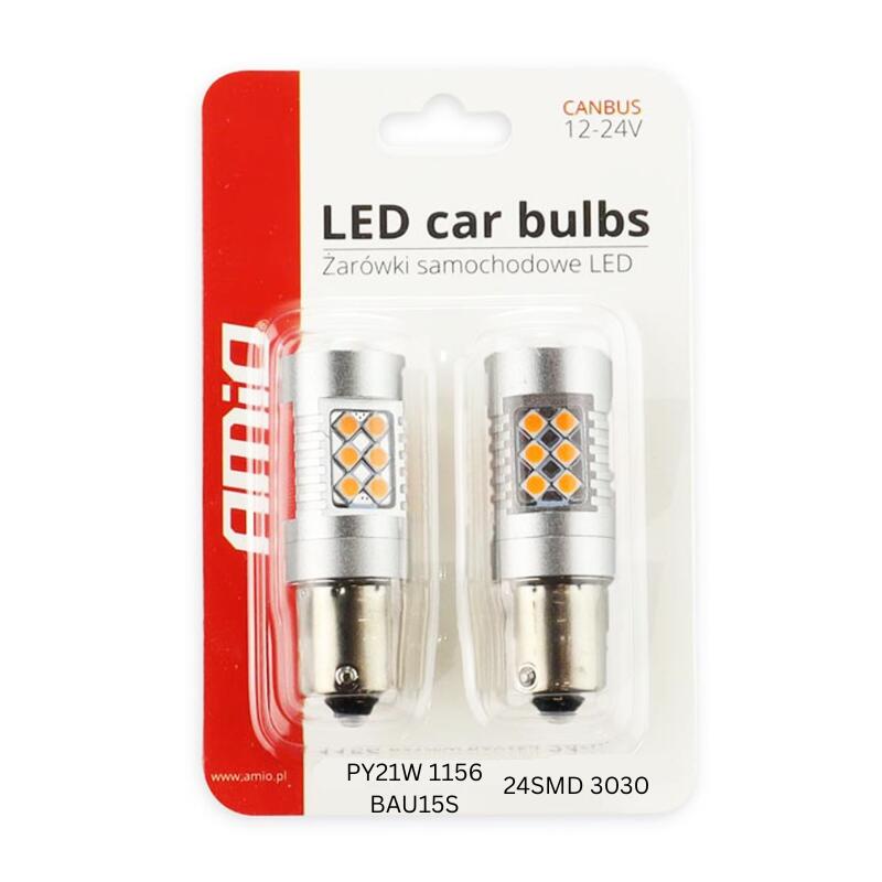 Set 2 becuri semnalizare 24 LED-uri, 12-24V, PY21W BAU15s, Canbus, 02580 Amio