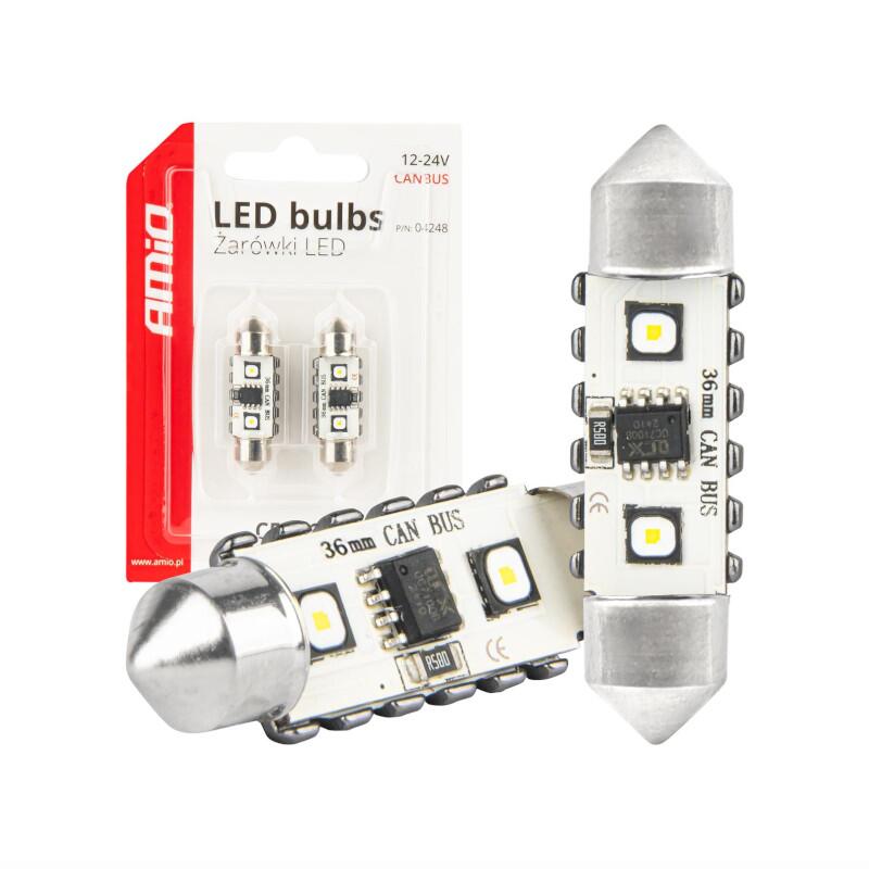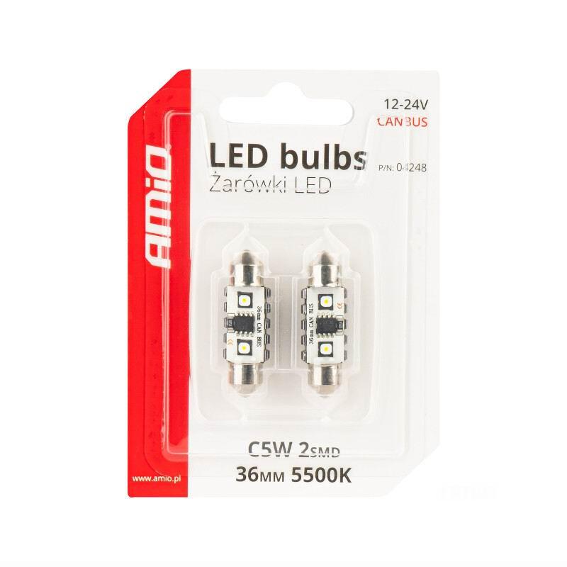 Set 2 becuri sofit, 12-24V, C5W, 36mm, 2 LED-uri SMD 3838, Canbus, alb, 04248 Amio.