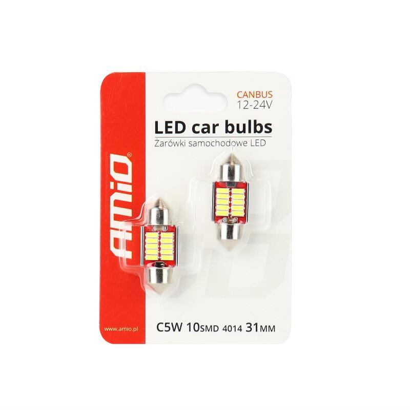 Set 2 becuri sofit, 12-24V, C5W, C10W, C3W, 31mm, 10 LED-uri SMD 4014, Canbus, alb, 01288 Amio.