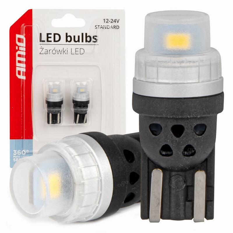 Set 2 becuri T10, 2 LED-uri SMD3020, 12-24V, W5W, alb, 360°Pure Light Series, 03726 Amio.
